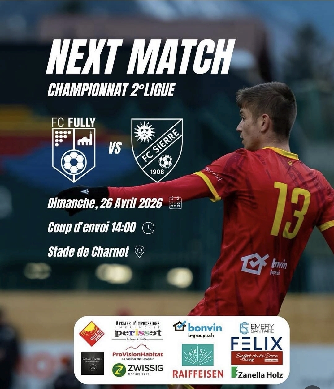 Salut ! J'espère que tu vas bien. Je voulais t'annoncer que l'Ecole de Foot du FC Sierre redémarre : Tous les mercredis dès le 27 août 2025 de 15h30 à 17h00. Alors, si tu es né(e) en 2018, 2019 ou 202...